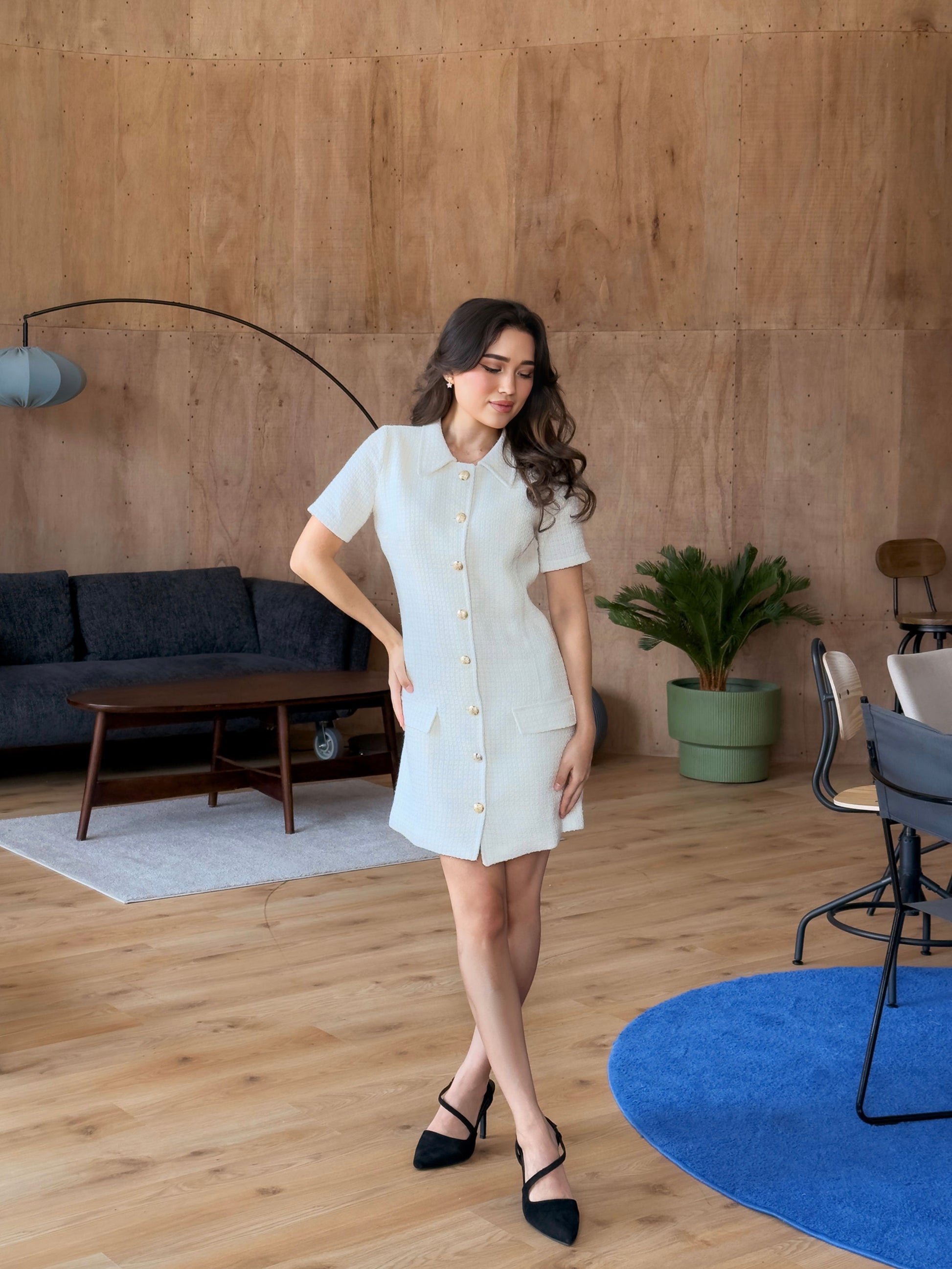 Elevate your wardrobe with the timeless allure of the Norabelle Ivory Textured Button-Front Dress. Crafted from a high-quality, textured fabric, this dress embodies the essence of sophisticated simplicity. The soft ivory hue complements its minimalist design, perfect for those who appreciate understated elegance.